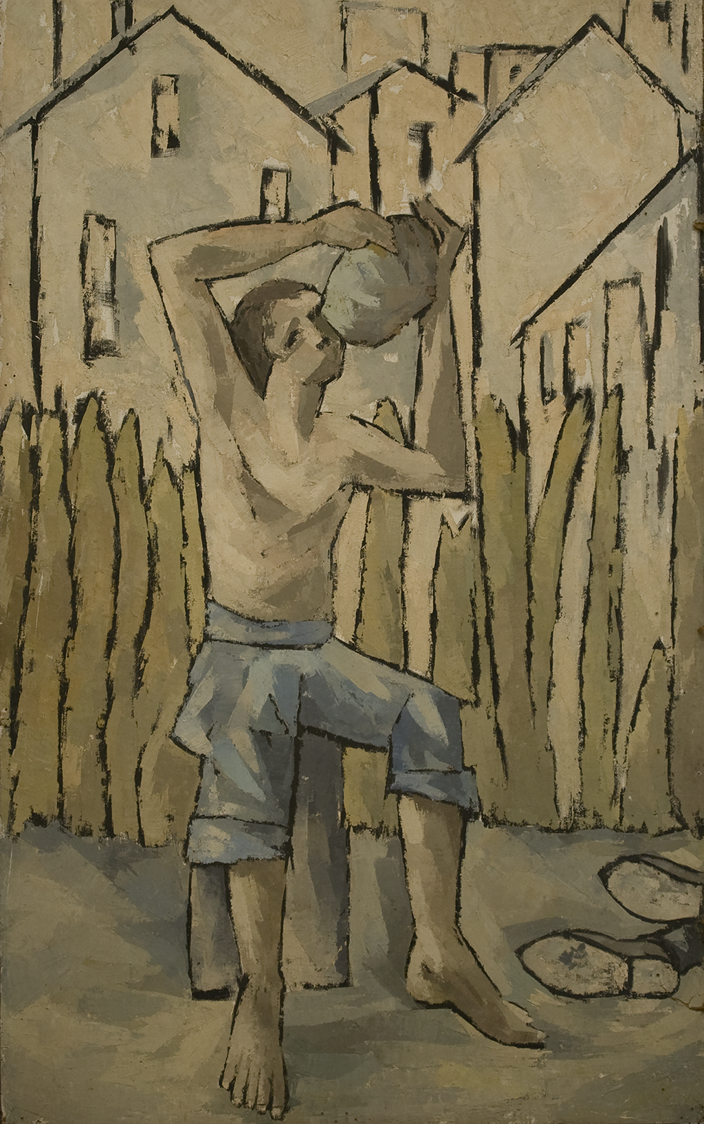Hombre con torso desnudo y tinaja 1/3
