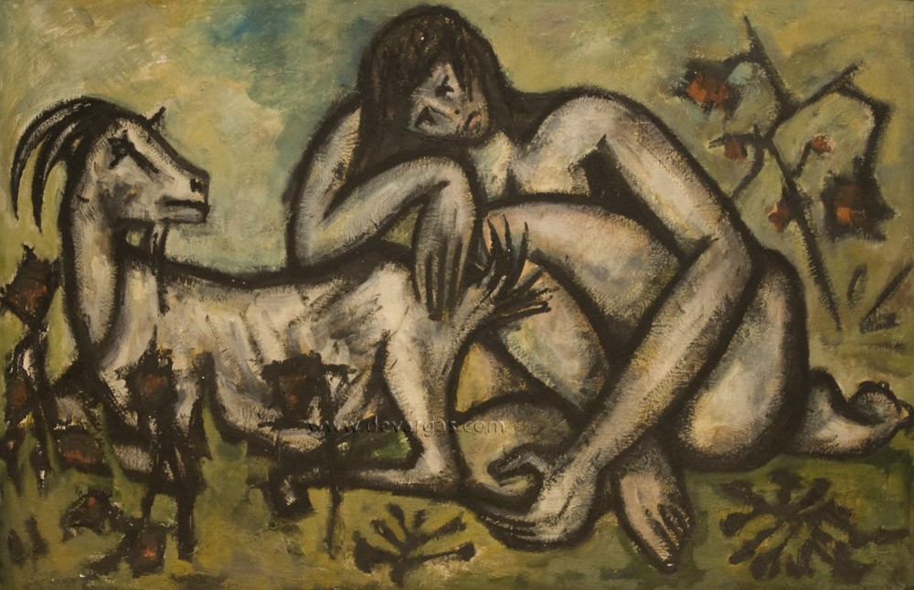 Mujer desnuda con cabra