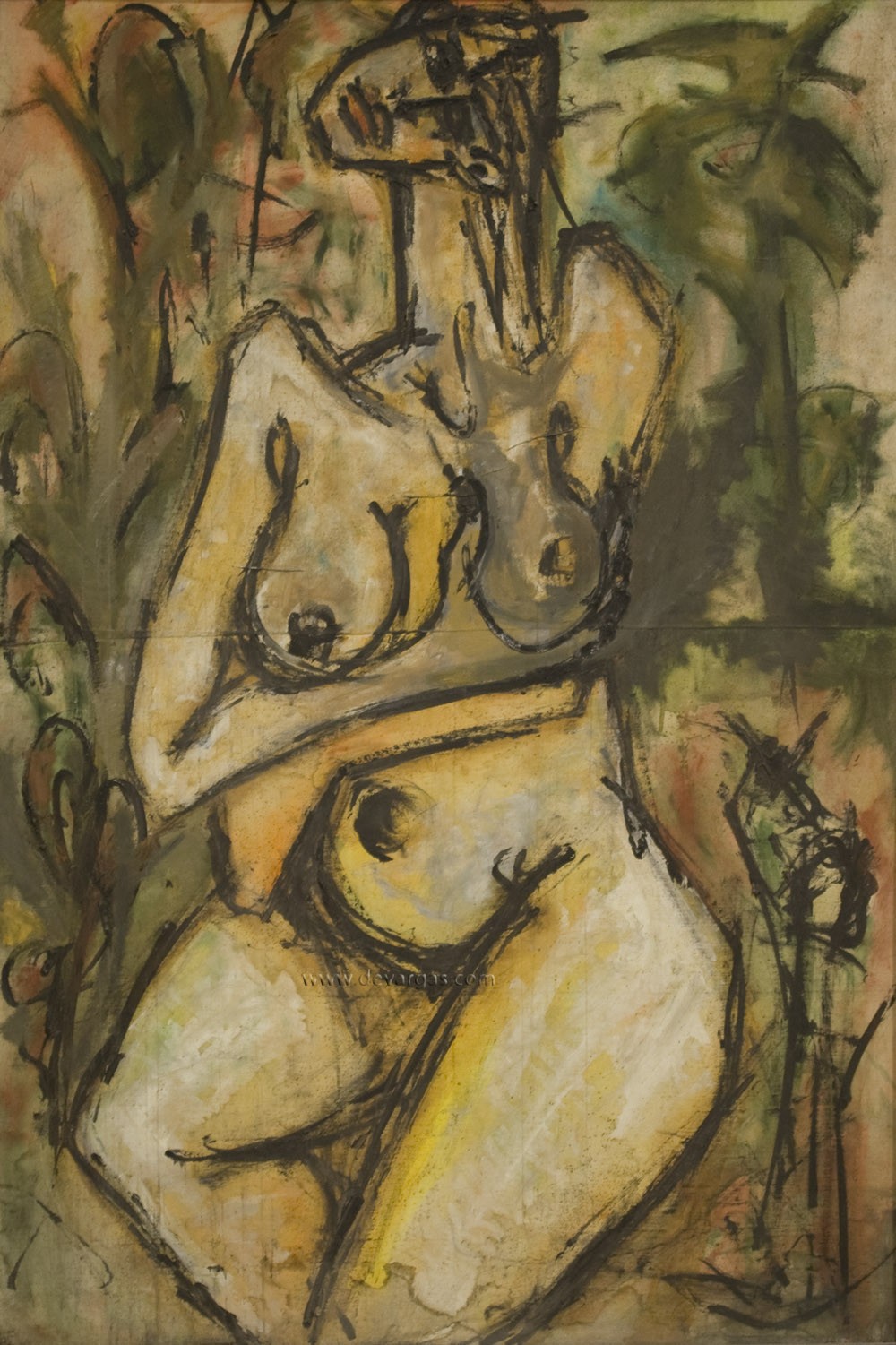 Mujer desnuda sentada en l